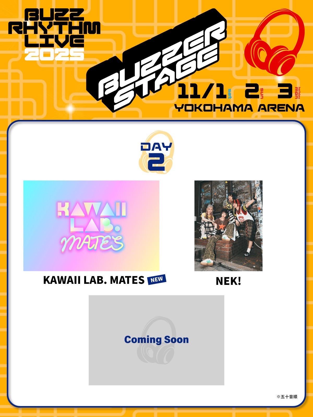 【11 ⽉2⽇(⽇)】 DAY2/[NEW] KAWAII LAB. MATES、NEK! 【11 ⽉ 3 ⽇(⽉・祝)】 DAY3/終活クラブ、猫背のネイビーセゾン、Baby Canta