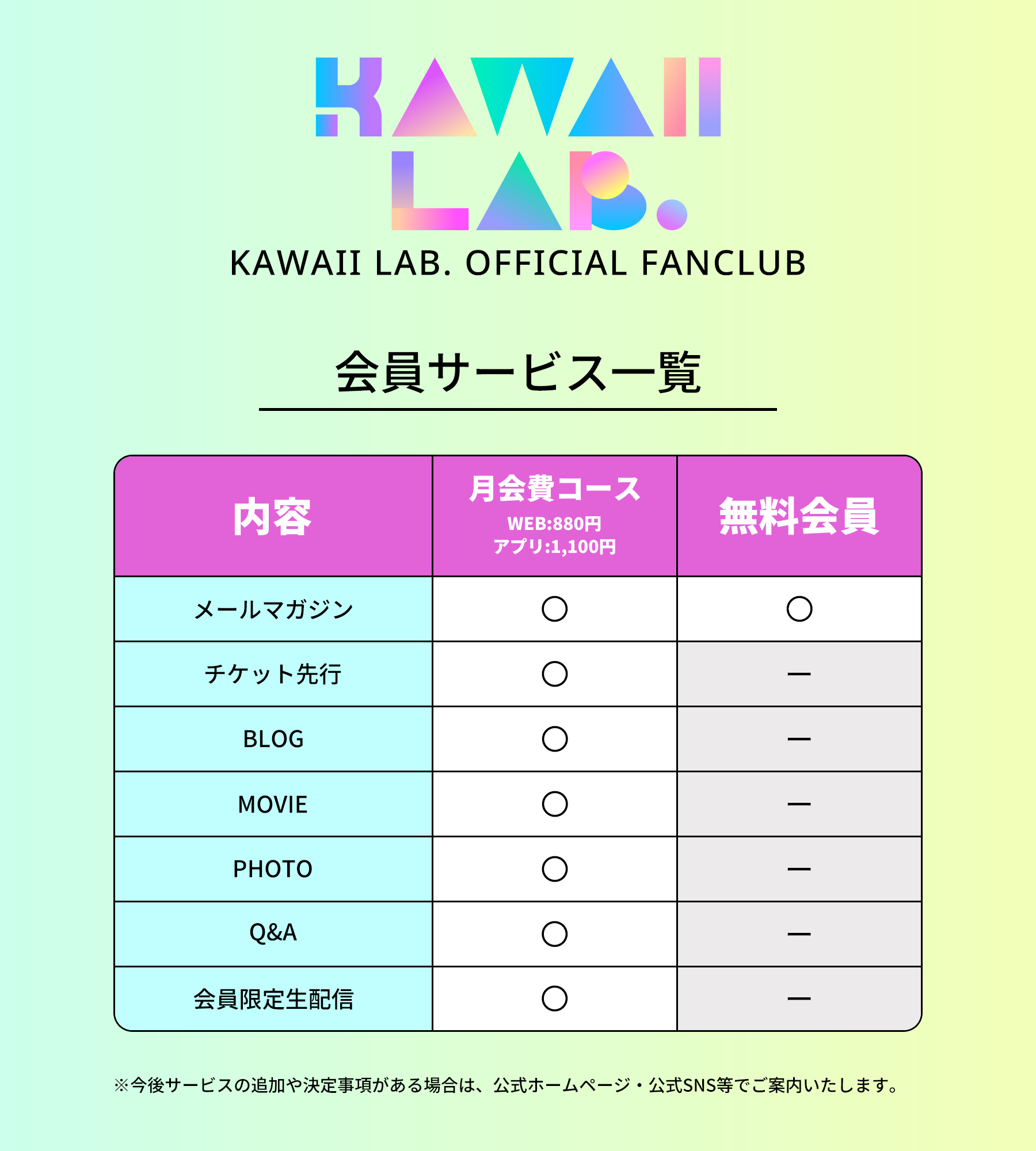 【KAWAII LAB. OFFICIAL FANCLUB】無料会員制度が始まりました!